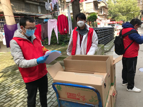 2月19日由于管控升级,和吴珺一起开始每三天一次为留守学生进行团购生活物资。