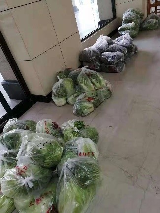 及时解决疫情期间职工的日常蔬菜购买困难和留汉研究生的日常生活困难。多次联络相关平台和商家,购买新鲜蔬菜,有序分发。积极联系食堂餐饮公司调集大白菜200斤、白菜苔100斤、红菜苔150斤运抵小洪山园区M楼一楼。实时发布采购信息,对有蔬菜购买需要的人员做好相关登记工作,通过扫描微信二维码协助相关人员自助领取。克服困难,及时组织人员前往超市为研究生们采购生活物资、食品、水果,送到了研究生们的宿舍中。