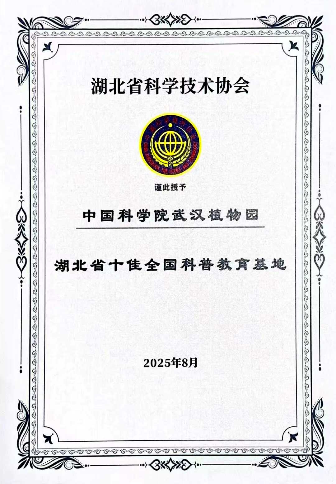 中国科学院武汉植物园获评“湖北省十佳全国科普教育基地”