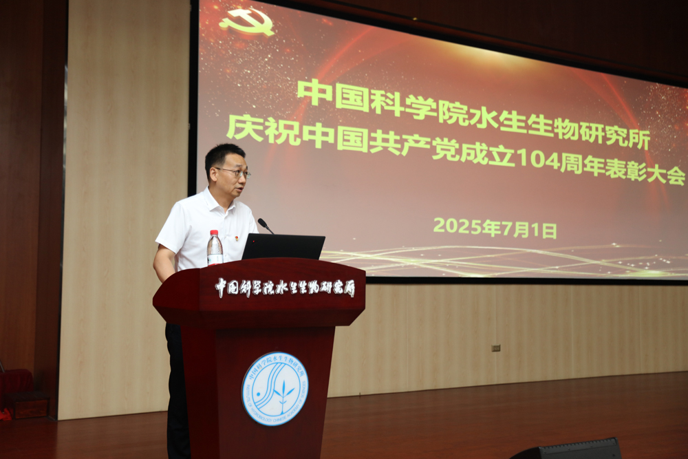 7月1日下午,中国科学院水生生物研究所举办庆祝中国共产党成立104周年表彰大会。所领导、党委委员、纪委委员,各党支部书记、支委,职能部门负责人、广大党员、青年理论学习小组成员、入党积极分子等近320人参加会议。会议由党委副书记、纪委书记梁琼主持。