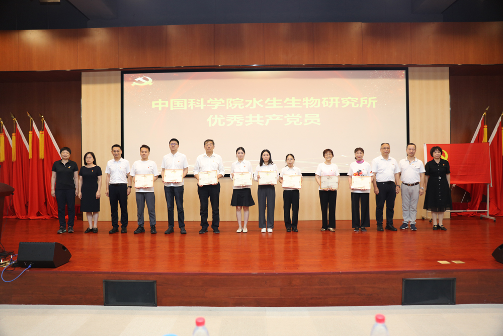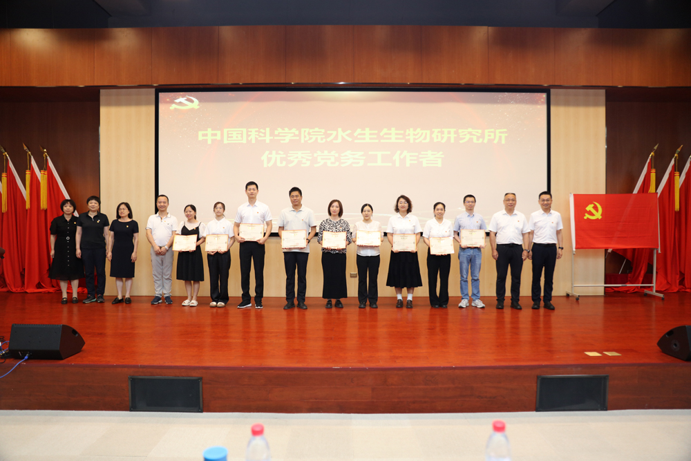 所党委委员、所长缪炜宣读了《中共中国科学院水生生物研究所委员会关于表彰优秀共产党员和优秀党务工作者的决定》。王洪铸等47名同志荣获水生所优秀共产党员,胡红娟等18名同志荣获水生所优秀党务工作者。党委书记解绶启、党委副书记梁琼、所长缪炜,所党委委员周莉、毕永红、张密为优秀共产党员代表、优秀党务工作者颁奖。