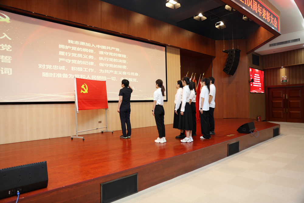 大会举行了入党宣誓和重温入党誓词仪式。在党委委员周莉的领誓下,新党员面向党旗,庄严宣誓,全体党员重温入党誓词。