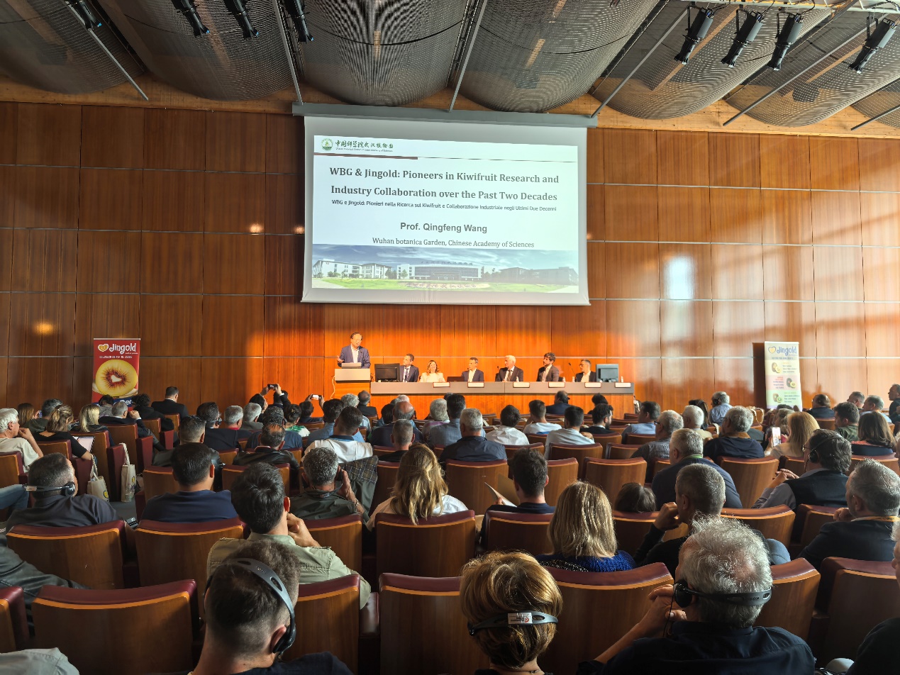 “我们以猕猴桃为抓手,将中国农业技术和科技力量通过国际科技合作,和意大利合作伙伴一起共同助力南非和津巴布韦等非洲国家实现特色作物产业化。”在Jingold SPA公司全球产业大会上,王青锋向30余国300余名代表介绍。展会期间,Jingold公司向武汉植物园特别颁发“文明互鉴·创新共进”合作荣誉证书,肯定双方二十余年猕猴桃产业科技合作成果。